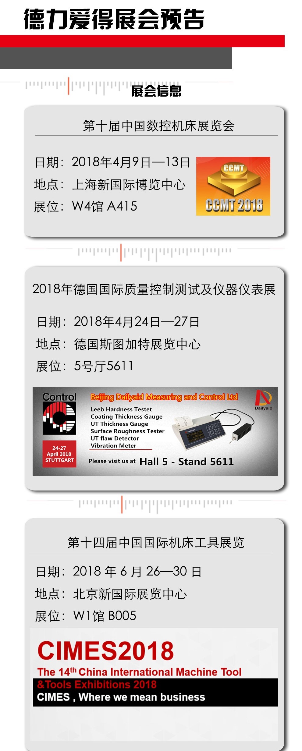 2018年是互相交流,共同進(jìn)步的一年。德力愛得將會(huì)如期參加以上展會(huì),屆時(shí)歡迎
